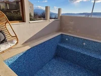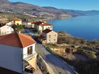 The ground floor accommodates a spacious garage, complete with a built-in electric charging station, an entrance hall leading into the villa, and an elegant staircase. Ascending to the first floor reveals a well-appointed living room, a kitchen, a dining area, a bedroom, a bathroom, and a delightful terrace that offers captivating sea views. The second floor features two bedrooms, a bathroom, and an elongated balcony. The villa's interior is adorned with fine oak wood details, evident in the carpentry and furnishings.