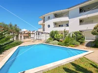 Key characteristics of the apartment:Area: 71.80 m²Floor: First floorRooms: Two bedroomsBathroom: 1Living room and kitchen: Open space conceptBalconies: 2 (with a beautiful view of the sea)Parking space: 1 reservedPool: Shared pool with reserved area for tenantsLicenses: Operating licenseThe apartment is located on the first floor, offering you a wonderful view of the sea from both balconies. Enjoy the spacious living room and modern open-plan kitchen, which is ideal for gatherings and family moments.
