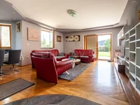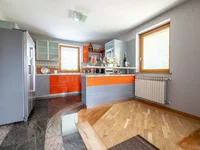 Une belle maison individuelle de 322 m2 construite en 2008 sur un terrain de 1332 m2 est à vendre. La maison se compose d'un sous-sol et de deux étages supérieurs. Le rez-de-chaussée se compose d'un couloir, salon avec cuisine et coin repas, chambre, cellier, salle de bains avec WC, et toilettes invités.