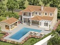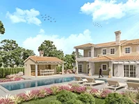 Cette villa de style méditerranéen de charme et d'architecture intemporel, partiellement recouverte de pierre, s'intègre dans le village et le paysage en termes de forme et de couleur, et la qualité de la construction garantit la satisfaction à long terme et la qualité de vie.