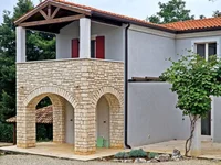 La villa mélange sans effort des éléments traditionnels et contemporains. Construit avec une combinaison de brique et de pierre, il rend hommage à l'authentique maison en pierre d'Istrie. Pendant ce temps, l'intérieur a été habilement adapté à la vie moderne, orné avec une attention particulière au détail. La fusion harmonieuse de la pierre et du bois lui confère un charme et une chaleur particuliers.
