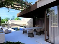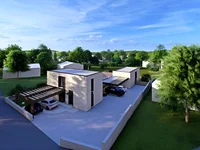 Just outside Brtonigla, in an ideal location that balances rural tranquility with proximity to the sea and urban amenities, a newly built modern home with a pool is available for sale. Designed to blend seamlessly with the surrounding landscape, the house features contemporary elegance, high-quality construction, and long-term living comfort.