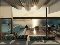 C'est un appartement au deuxième étage. En même temps, c'est le seul appartement à cet étage. Le plan d'étage se compose d'un couloir, salle de bains, 2 chambres, chacune avec sa propre salle de bains, chambre avec salle de bains et armoire, cuisine avec salle à manger et salon, terrasse couverte, terrasse sur le toit partiellement couverte avec une grande piscine de 34.53 m2. La zone utile nette de l'objet est 235,75 m2.