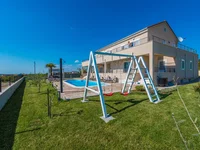 Il y a une villa de luxe à vendre avec piscine à Debeljak. Il est orienté sud, à 550 m du centre et à 2,3 km de la mer.