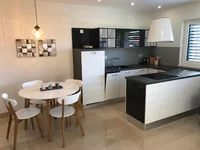 La maison est vendue meublée. Année de construction 2017. Construction de briques thermoblocables. Toit plat. Chaque appartement dispose d'un compteur d'électricité séparé. Installé une antenne satellite et une surveillance. Fenêtres en PVC avec moustiquaires, triples fenêtres et lattes. Isolation thermique de l'élévation de 10 cm de Styromousse. Sols carrelage et parquet. 11 climatiseurs au total. Les climatiseurs sont installés dans chaque salon et dans toutes les chambres sauf le sous-sol. Il y a aussi une cheminée. Il y a un grill extérieur. Enfin, la porte d'entrée est cambriolage et ignifuge.