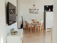 La maison dispose d'un sous-sol, rez-de-chaussée, premier et deuxième étage. Au sous-sol il y a une salle des machines, entrepôt, hall, sauna, une chambre et un appartement avec une chambre. Au rez-de-chaussée se trouve un appartement avec deux chambres. Chaque chambre a sa propre salle de bains. Puis au premier étage sont deux autres appartements avec une chambre. Au deuxième étage se trouve un autre appartement avec deux chambres. Le jacuzzi est situé sur la terrasse au deuxième étage.