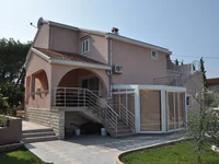 Belle maison en deux parties à vendre à Kukljica, île d'Ugljan. Le rez-de-chaussée se compose d'un hall, salle de bains, cuisine avec salle à manger et salon, chambre, buanderie, terrasse couverte, cellier, salle avec jacuzzi, garage et chaufferie et casier supplémentaire sous les escaliers extérieurs. Des escaliers intérieurs mènent au premier étage, où il y a un hall, deux autres chambres, une salle de bains et une terrasse partiellement couverte. Au même étage se trouve un appartement séparé avec une chambre et une terrasse partiellement couverte. Vous pouvez également entrer dans cet appartement par les escaliers extérieurs.