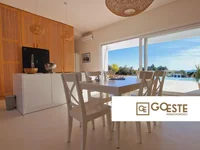 Cette villa moderne est située près de la ville de Krk sur l'île de Krk. Grâce à sa position élevée, il a une vue panoramique dégagée sur la mer et les îles.