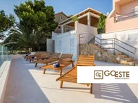 Dans le bâtiment il y a 7 appartements, 3 studios, un restaurant en parfait état, une grande piscine chauffée avec terrasse ensoleillée, sous laquelle se trouve la salle des machines et la salle de ferme, ainsi qu'une chambre supplémentaire. Tous les appartements sont modernes et climatisés. Il y a 300 litres de panneaux solaires sur le toit. La maison dispose de 5 places de parking et d'un garage.