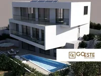 Il ya une villa exclusive à vendre à Trogir, situé dans la partie de la ville, qui est situé sur l'île de Čiovo. Il a été soigneusement conçu pour offrir une vue panoramique sur la mer de chaque pièce, et le flux d'air de l'ensemble de la villa a été réalisé grâce à des murs en verre et des clôtures.