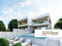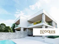 Au rez-de-chaussée il y a un grand salon d'une superficie totale de 30,4 m2, un grand espace où la cuisine et la salle à manger sont reliées avec une superficie totale de 36,25 m2, une toilette et deux salles de rangement plus petites. De la salle de séjour est une sortie vers une terrasse couverte d'une superficie totale de 25.65 m2. Des escaliers intérieurs mènent au premier étage, où il y a 3 chambres, chacune d'une superficie de 15 m2. Chaque chambre dispose d'une salle de bains séparée et d'une connexion Internet. La chambre principale a accès à une grande loggia d'une superficie totale de 28.75 m2. Il y a une piscine dans la cour de la maison.