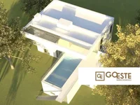 L'escalier intérieur mène à l'étage avec une disposition à l'étage ouvert qui comprend une cuisine, salle à manger et salon. Entouré de hauts murs en verre, la lumière naturelle illumine tout le sol, créant une atmosphère encourageante. L'entrée de la terrasse partiellement couverte offre des installations telles que cheminée et piscine chauffée. L'emplacement unique de la piscine au dernier étage offre un maximum d'intimité, ce qui en fait une caractéristique unique de cette propriété.