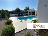 A côté de la sortie il y a une terrasse avec une piscine et une cuisine d'été. Au rez-de-chaussée est également une salle de bains et une chambre. Au premier étage se trouvent trois chambres et deux et deux salles de bains. Deux chambres ont accès à une terrasse commune. A l'entrée de la cour il y a un garage avec une place de parking, deux places de parking extérieures et une cuisine d'été équipée de tous les équipements modernes.