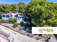Dans la nature il y a deux propriétés séparées à vendre, qui forment un tout, relié par une grande cour pavée avec orientation sud-ouest. La cour est partiellement couverte de pins, chaque été offre une ombre agréable et la possibilité d'un séjour en plein air toute la journée. La plage est à environ 70 m, où il y a aussi une jetée privée avec la possibilité d'amarrer un petit bateau.