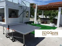 La maison d'une surface habitable de 220m2 est située sur un terrain de 524m2 et se compose d'un sous-sol, rez de chaussée et premier étage. Au rez-de-chaussée il y a une terrasse couverte avec une salle à manger extérieure et une entrée à l'appartement, qui se compose de trois chambres et une salle de bains. En dehors du jardin il y a un bâtiment fermé avec une cuisine avec salle à manger et salon. Il y a aussi des toilettes dans le bâtiment. L'escalier extérieur en spirale mène à une terrasse vitrée avec des meubles de jardin qui offre un endroit pour profiter de mois plus chauds. A côté du bâtiment se trouve une zone couverte avec jacuzzi, terrasse ensoleillée et équipement de divertissement et douche extérieure. Dans la deuxième partie couverte est une cheminée avec une salle à manger extérieure. Les escaliers extérieurs mènent au premier étage, où il y a une terrasse couverte avec des meubles de jardin menant à l'entrée de l'appartement. L'appartement se compose d'un salon ouvert, cuisine avec salle à manger, salle de bains et deux chambres.