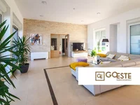 Des escaliers en spiral mènent au premier étage, où il y a quatre chambres richement équipées avec salles de bains et une chambre supplémentaire destinée au bureau. Les quatre chambres ont accès à une belle terrasse donnant sur la mer et les équipements extérieurs. L'ensemble du bâtiment dispose de chauffage au sol, et chaque chambre est en outre climatisée, ce qui rend l'espace plus confortable à vivre. Au rez-de-chaussée, sur le côté, il y a un appartement indépendant avec une chambre avec une entrée séparée et une terrasse, composé d'une salle d'affaires, salle de bains, une chambre, cuisine avec salle à manger et salon. La propriété a également un garage attaché pour deux voitures et un grand parking pour plusieurs voitures. Étant donné sa position dominante et le climat méditerranéen doux, cette villa offre une opportunité de vivre toute l'année, mais est également parfaite pour les vacances annuelles ainsi que pour la location touristique.