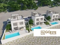 La propriété est située sur un terrain de 407 m2 avec accès privé et accès à toute l'infrastructure. La surface de l'appartement est de 190 m2 et chaque étage offre une vue panoramique ouverte sur la mer et les environs. La zone se compose d'un parking, piscine, terrasse et petite architecture. La maison s'étend sur deux étages, un rez-de-chaussée et le premier étage avec accès à la terrasse du toit. Au rez-de-chaussée il y a une cuisine et salle à manger, salon et un WC commun. L'escalier intérieur mène à l'étage, où il y a trois chambres spacieuses, chacune avec sa propre salle de bains.