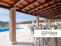 La maison est entourée d'un jardin bien entretenu avec des plantes méditerranéennes, ainsi qu'une belle piscine qui domine l'extérieur et autour de laquelle est un espace de bains de soleil avec chaises longues en plein air.