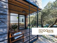 Il se compose de trois étages - le rez-de-chaussée, les premier et deuxième étages. Au rez-de-chaussée il y a une cuisine avec une salle à manger qui mène à une terrasse meublée et couverte. Au deuxième étage il y a un salon et salle de bains, et au dernier étage une chambre avec salle de bains.