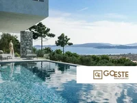 La propriété est située dans un complexe avec deux autres villas sur un terrain légèrement incliné, avec une vue unique sur la mer. La superficie du terrain est de 1688m2, dont la villa occupe 306m2. La villa se compose du premier étage et du rez-de-chaussée, où il ya une cuisine d'été, une douche, une piscine et une grande terrasse qui est partiellement couverte. Les villas ont une route d'accès commune, mais leurs propres entrées et garages.