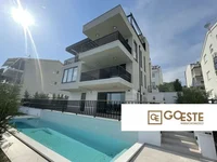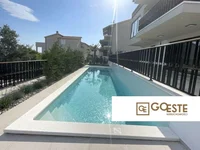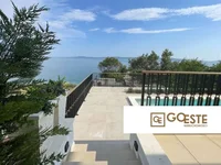 Au sous-sol il y a une cave à vin, buanderie, salle de bains, sauna, cellier, salle technique et une salle de fitness spacieuse avec accès à une terrasse avec piscine. Au rez-de-chaussée il y a un couloir menant à trois chambres, chacune avec sa propre salle de bains, et l'une des chambres dispose d'un balcon spacieux avec vue sur la mer. Au premier étage il y a une cuisine spacieuse avec salle à manger et salon, qui sont orientés sud. Toute la longueur du salon étend un balcon avec une cheminée. A cet étage il y a aussi une chambre avec salle de bains, placard et WC. L'avantage de la propriété est une terrasse sur le toit qui abrite un jacuzzi et peut accueillir d'autres commodités. Le caractère individuel du bâtiment est également soutenu par l'ascenseur, qui, en plus de sa fonctionnalité ajoute également une apparence esthétique au bâtiment.