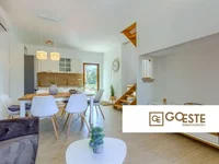 La maison est construite en rangée sur un terrain de 160 m2 et a une surface habitable totale de 100 m2. Il se compose de trois chambres, deux salles de bains, une cuisine ouverte avec salle à manger et salon. Les chambres sont climatisées, la propriété est à vendre meublée. La partie extérieure est enrichie d'une terrasse avec un coin repas extérieur et d'une terrasse clôturée avec piscine et bain de soleil.