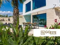 Cette nouvelle villa de luxe entièrement équipée a été construite fin 2022 La construction utilise des matériaux de haute qualité : menuiserie en aluminium, revêtements de sol en pierre naturelle française et portugaise, et appareils sanitaires haut de gamme par Steinberg, Axor et Geberit. L'isolation thermique de la façade est de 10 cm Styrofoam, décoré avec la pierre Travertino, est entièrement climatisé avec chauffage au sol dans toutes les chambres.