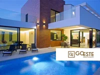 La villa a une surface habitable totale de 270 m2 et est située sur un terrain de 627 m2. Comprend le sous-sol, le rez-de-chaussée et le premier étage. Au sous-sol il y a une chaufferie, une ferme, des toilettes et une taverne équipée d'une cuisine, d'une table de billard et d'une cave à vin. Le rez-de-chaussée se compose d'une cuisine ouverte avec salle à manger et salon, cellier, WC et une chambre. L'escalier intérieur mène au premier étage, où il y a trois chambres avec salles de bains et accès à la terrasse. Le salon a accès à un espace extérieur, qui est enrichi d'une piscine de 38 m2, une terrasse bien exposée, une salle à manger extérieure et un barbecue.