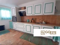 De la cour vous entrez au rez-de-chaussée de la villa, où il y a une cuisine et salle à manger. Ci-dessous se trouve un salon spacieux et joliment meublé, entièrement bordé de pierre.