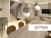 La villa a un total de quatre chambres, chacune avec sa propre salle de bains, tandis qu'au deuxième étage il ya un espace de loisirs, sauna, fitness, bar et terrasse sur le toit avec une superficie totale de 41m2, qui comprend des meubles de jardin pour les sièges et les réunions sociales et un jacuzzi. La vue de cet étage n'a pas besoin de beaucoup de commentaires, il suffit de dire qu'il prend la respiration.