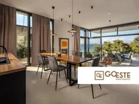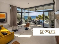 La superficie totale de la villa est de 260 m2 et est située sur un terrain de 490 m2. Il se compose de sous-sol, rez-de-chaussée et premier étage. Au sous-sol il y a un garage avec toutes les places de parking et une salle économique. Le rez-de-chaussée se compose d'un salon avec cheminée, cuisine avec salle à manger, salle de bains, salle de ferme et armoire. Au premier étage se trouvent trois chambres avec salles de bains. La grande terrasse sur le toit offre une vue sur la mer et la ville.