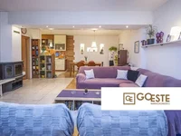 Il se compose de deux chambres, deux salles de bains, un salon avec cheminée qui chauffe tout l'appartement, salle à manger et cuisine, un cellier et une terrasse de 40 mètres carrés avec une cheminée extérieure.