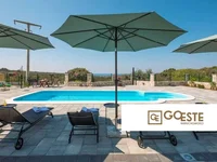 Une villa en pierre récemment construite avec une piscine située dans un environnement calme de nature méditerranéenne intacte.