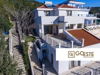 La maison se compose de deux étages avec deux suites. Le premier étage se compose de deux chambres, une salle de bains, une cuisine avec salle à manger et un salon, d'où il ya accès à la terrasse avec vue sur la mer. Au deuxième étage il y a un appartement de deux étages composé de 2 salles de bains, 3 chambres, salon, cuisine avec salle à manger et une grande terrasse avec vue sur la mer. La maison dispose de 5 places de parking. La maison dispose également d'un quai avec un quai pour bateaux.