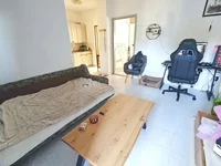 La superficie totale de l'appartement est de 35 mètres carrés et comprend un salon avec une cuisine et un coin repas, une chambre, une salle de bains et une terrasse couverte. L'intérieur est soigné, bien entretenu, et meublé avec des meubles de qualité et des équipements techniques fonctionnels. Une caractéristique spéciale de cet appartement est son petit jardin privé joliment paysagé. La propriété comprend également une place de parking dédiée dans la même zone. Outre sa fonctionnalité et son entretien, l'appartement bénéficie d'une bonne orientation et offre une belle vue sur le paysage côtier.