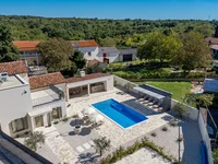 This elegant villa is located in a peaceful village just a 15-minute drive from Rovinj, one of the most desirable destinations on the Istrian coast. The property sits on a 640 m² plot, with a living area of 130 m² spread over the ground floor and first floor.