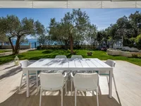 Step outside to your private paradise, where a covered parking space welcomes you home. The impeccably landscaped garden, verdant lawn, and mature olive trees form a tranquil haven, framed by the endless Adriatic Sea. This first row villa in Croatia for sale truly captures the essence of Mediterranean bliss.