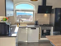 This property is a spacious duplex apartment with the entrance on the lower level. In a well-constructed building, the apartment is located on the first floor and includes an attic of approximately 30 m². The total living area of the apartment is 96 m², comprising an entrance hallway, living room, kitchen with dining area, bathroom, bedroom, wardrobe, and a balcony on the first floor. The upper level features two children’s rooms, a bathroom, and a large rooftop terrace. The interior is very well-maintained and fully equipped with all necessary appliances and high-quality furniture.