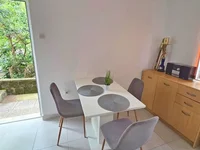 This is a very comfortable, medium-sized single-level apartment with an excellent layout. Situated on the ground floor of a well-constructed building, the apartment has a total surface area of 54 m². The floor plan includes a living room with a kitchen and dining area, a bedroom, a bathroom, and a spacious terrace of approximately 13 m². The interior spaces are particularly well maintained and fully equipped with all necessary appliances and high-quality furniture.