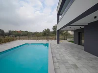 Dans le paisible village d'Istrie de Kaštel, à quelques minutes de Buje et à proximité de la frontière slovène, une maison moderne nouvellement construite est à vendre. Cette propriété combine une construction de haute qualité, un design élégant et un confort complet pour la vie quotidienne. Il offre tout aujourd'hui les acheteurs cherchent: l'espace, la fonctionnalité, l'intimité, et la qualité de haut niveau.