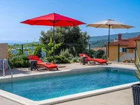 The villa stands on a 500 m² plot and offers a total usable area of the house of approximately 260 m². The layout of the house is well thought out with an emphasis on comfort, privacy and functionality. It includes four elegantly furnished bedrooms, each with its own bathroom with shower. Three bedrooms have direct access to a balcony with a sea view, which underlines the holiday atmosphere of the house.