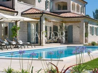 Villa Nevija boasts an impressive 372 m² of living space, situated on a 1611 m² plot surrounded by lush greenery for complete privacy. The villa's vintage charm is reflected in its airy spaces, perfect for family gatherings.