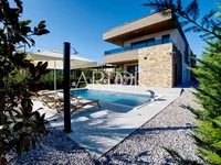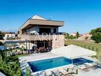For sale is a luxury villa in Istria – a modern new construction that combines superb architecture, functionality and elegance. It extends over 200 m² of living space and is located on a 600 m² plot, carefully designed to meet high standards of quality and comfort. Only the best materials have been used, including triple-glazed insulating glass and an underfloor heating system, which guarantees top-notch energy efficiency and a comfortable stay throughout the year.