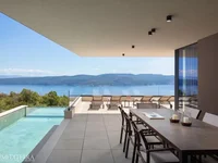 Dans un endroit exceptionnel et calme à Kršan, une villa de luxe moderne est à vendre, combinant une architecture haut de gamme, une intimité complète et une vue panoramique dégagée sur la mer et l'île de Cres. La villa se trouve sur un terrain magnifiquement entretenu et entièrement clôturé de 1.281 m2 et offre 245,95 m2 de surface habitable nette, répartis sur deux étages.