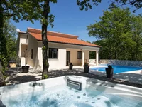 Entouré de verdure dans un village paisible près de Labin et Rabac, une villa impeccable avec piscine dans un endroit isolé est à vendre.
