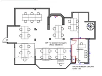 Nombre total de bureaux : 300m2 (sol rond + mezzanine)