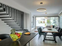 For sale off-plan house with 5 bedrooms, located 200 meters from the sea, in the area of Dhekelia, Larnaca. The individually designed plan provides for the construction of a swimming pool and a roof garden at the request of the buyer. Partially covered veranda on the ground floor - 13 m2, partially covered veranda on the second floor - 12 m2. Fenced plot of the roof garden - 40 m2. There are 4 bathrooms plus 1 guest room.Modern design of the complex. Adjustments to the construction process are possible.Parking for two cars. Quick and convenient access to all necessary infrastructure, as well as to the transport highway.