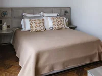 L'île de la cuisine et les armoires présentent une image frappante de la sophistication, ornée de bois GAMADECOR. Ce détail s'intègre parfaitement dans le design général, créant une interaction harmonieuse entre les éléments en pierre et en bois. La cuisine est entièrement équipée avec des appareils haut de gamme, et il y a aussi un énorme refroidisseur de vin, parfait pour accueillir les invités.