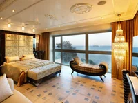 Sols: marbre italien de haute qualité avec un design mosaïque spécial. Parquet italien fait main dans les chambres.