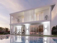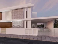 Une maison contemporaine avec un beau jardin avec espace pour une piscine, garage double et terrasses.